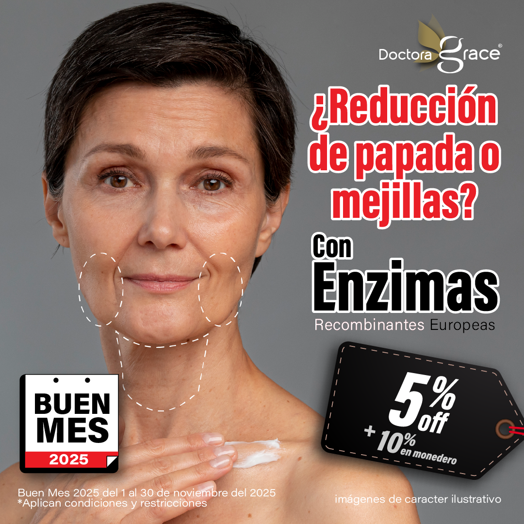 Según el caso se combinan lipasa (lipólisis de grasa localizada), colagenasa (remodelación de tejido fibrótico) y hialuronidasa/lyase (permeabilidad y drenaje). Esta sinergia mejora contorno submentoniano, suaviza irregularidades y acorta la recuperación frente a abordajes más agresivos.