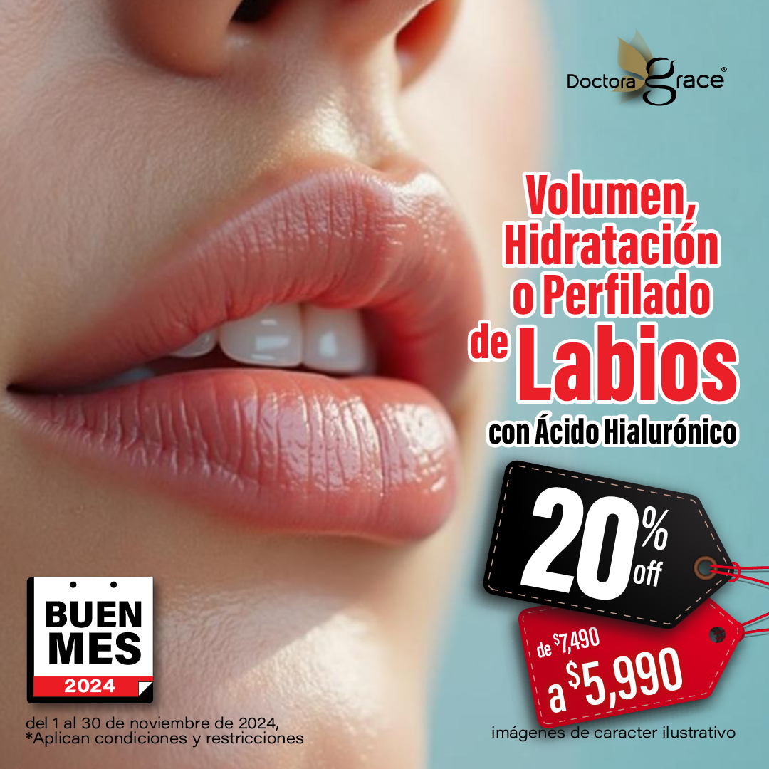 ¿Qué se hace? La Doctora Grace aplica un gel de ácido hialurónico en los labios. Este gel se coloca cuidadosamente para aumentar el volumen y definir la forma de los labios.