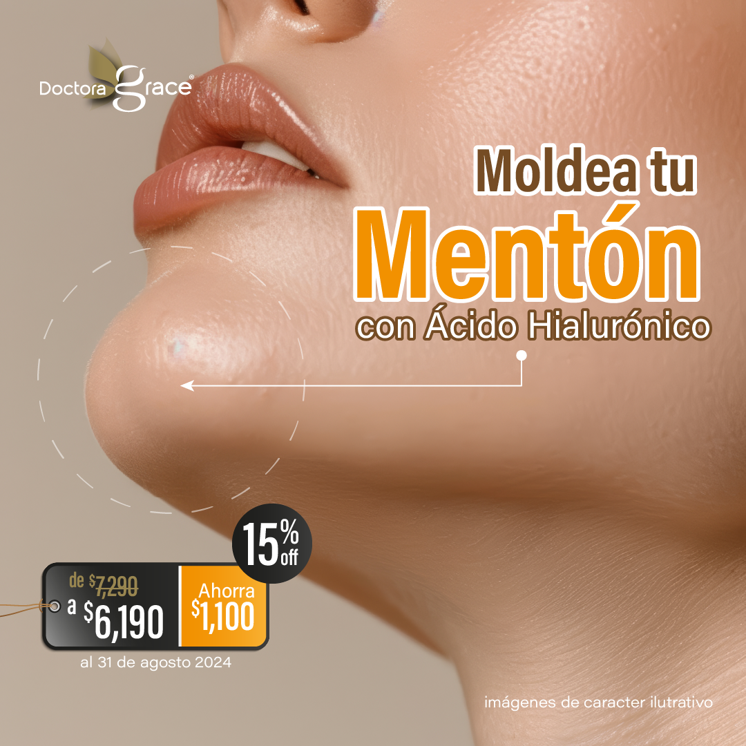 ¿Cómo se realiza? La Doctora Grace realiza pequeñas inyecciones en el mentón. El gel se distribuye para crear la forma deseada y mejorar la apariencia y volumen del mentón.