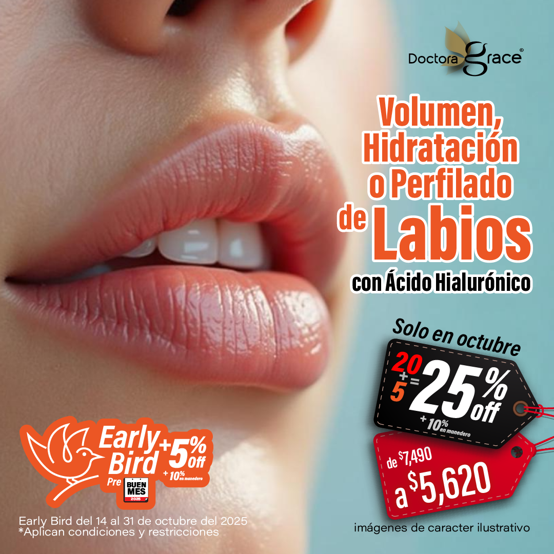 El relleno de Ácido Hialurónico en labios es un procedimiento médico que permite mejorar la forma, volumen e hidratación natural de los labios. Se realiza con ácido hialurónico reticulado, una sustancia biocompatible que el cuerpo produce de forma natural y que ayuda a mantener la piel firme e hidratada.