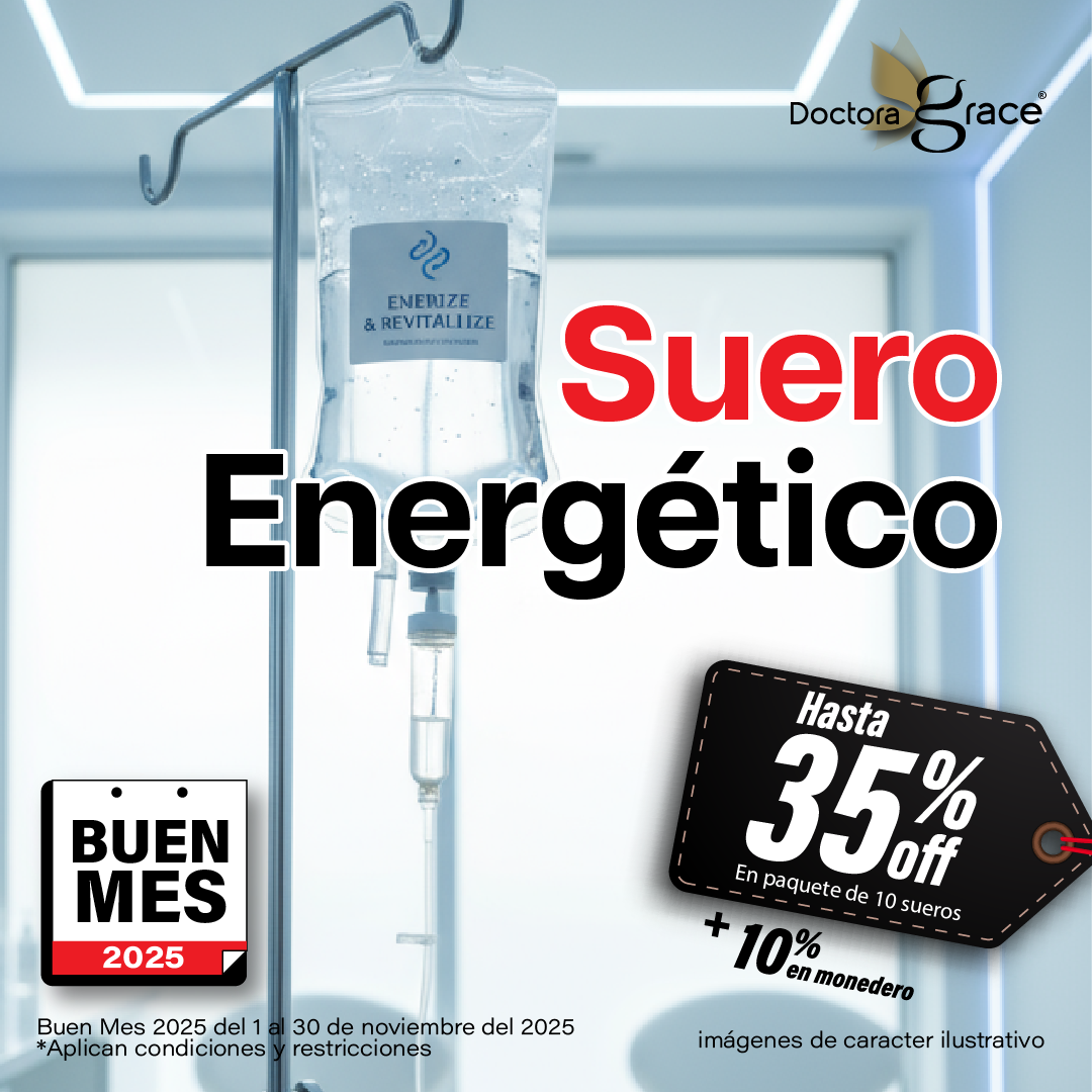 El Suero Energizante es un tratamiento especializado que combina nutrientes y vitaminas esenciales para revitalizar tu cuerpo. Diseñado para aumentar los niveles de energía y combatir la fatiga, este suero mejora el rendimiento físico y mental, proporcionando una sensación de bienestar general.